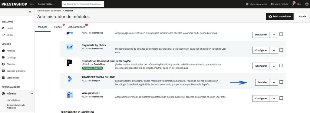 El módulo de Inespay para PrestaShop está diseñado para tiendas en línea que desean ofrecer a sus clientes una opción de pago rápida y segura mediante transferencia bancaria online. Es la solución más sencilla y directa para integrarse con Inespay, permitiendo a los comerciantes gestionar pagos de forma eficiente sin complicaciones técnicas. Al instalar el módulo, los propietarios de tiendas PrestaShop pueden facilitar el proceso de compra y mejorar la experiencia del cliente, integrando esta pasarela de pago de manera rápida y con configuraciones fáciles desde el panel de administración.