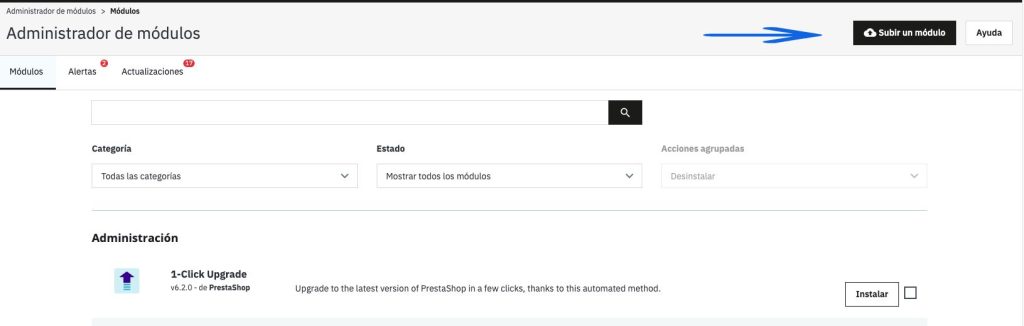 - Haz clic en el botón «Subir un módulo» en la parte superior derecha de la página.